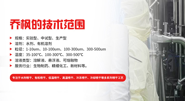 喬楓發(fā)明了新的低溫噴霧干燥技術(shù),在低溫的狀態(tài)下保持物料活性,某種程度上可以取代凍干機(jī),大幅度的提高生產(chǎn)產(chǎn)能。適用于(司美格魯肽、多肽、氨基酸、多種酶菌、多種蛋白、噬菌體、 抗生素、微膠囊、等物料,詳情請(qǐng)咨